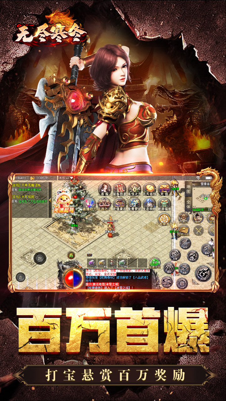 无尽寒冬是一款高福利、高爆率的传奇游戏,采用了经典的三职业模式供你选择游玩。无尽寒冬里你刚上线就有机会获得自动回收装备、自动拾取物品和大量基础材料福利,无尽寒冬还融合了攻速养成、剧情探索等等的特色玩法,还有超多精灵伙伴等你来解锁征服,轻轻松松就能享受到别具一格的游戏体验。无尽寒冬中高级装备、游戏货币和稀有材料都需你通过战斗获取,参与感超强不说还很接近传奇打金游戏可玩性超高。
