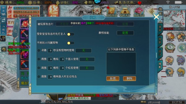领取“见面礼”中的自动捡取、自动回收等功能,开启便捷打怪升级模式。