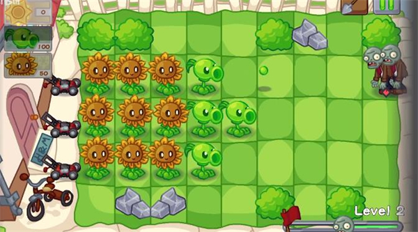 消灭所有僵尸后通关,获得新的植物卡牌。