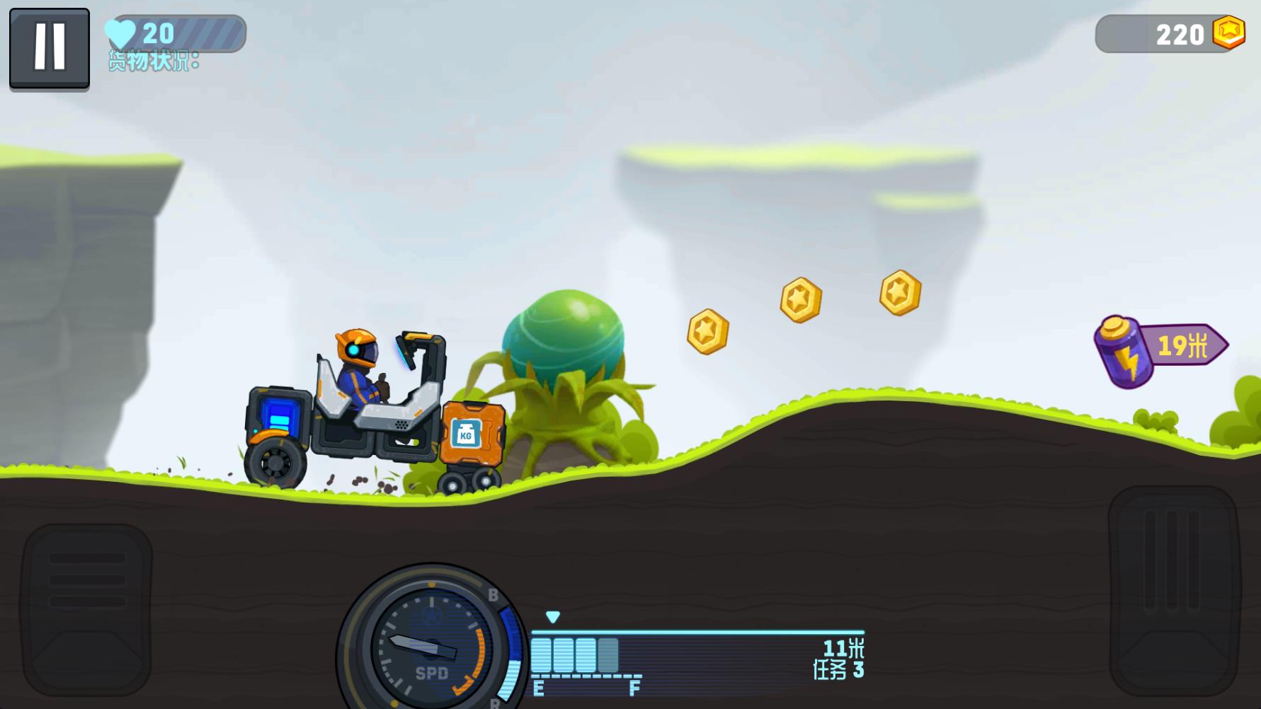 3、正式开始后左边控制车辆后退,右边控制车辆前进,车辆前进是会消耗能量的,电池能量会在屏幕下方显示。