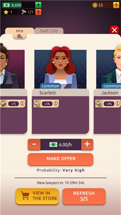在法律帝国大亨手游中,随着律所的扩张,你需要招募更多的律师来帮助你打理律所事务,你可以在这里打造你心目中的律所样式。