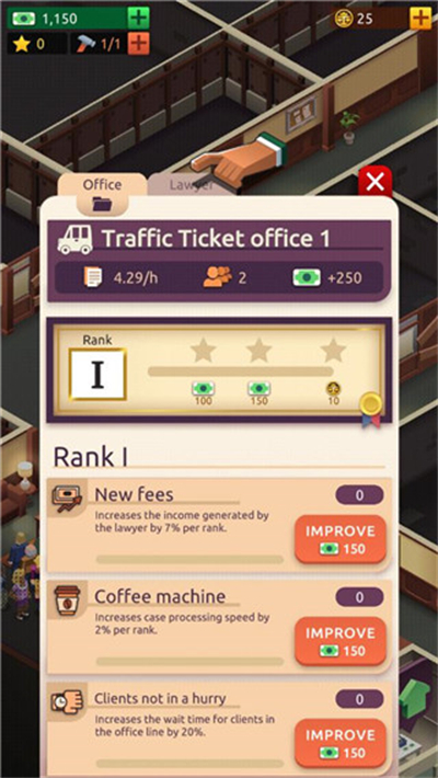 法律帝国大亨是一款卡通风格的模拟经营手游,你将在这里扮演一名律师,你将建立一间属于你自己的律所,会有非常多的客人前往你的律所上诉各种案件,你需要处理这些案件来获取收益,从而把你的律所做大做强。