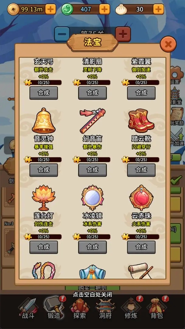 丰富的修仙体系:包含多种修仙功法、剑法和法宝,玩家可以自由选择修炼方向。