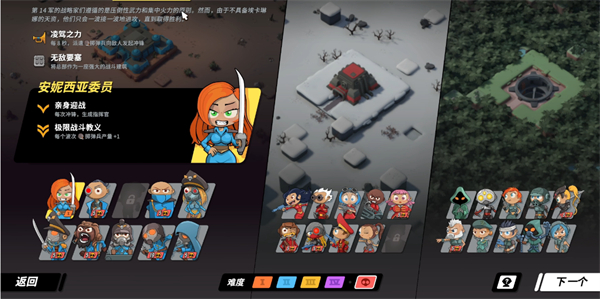游戏的动态地形系统为传统塔防游戏带来了新的维度,玩家需要不断适应随机生成的战场和敌人,制定灵活的防御策略。丰富的英雄和防御塔升级组合,以及解锁系统中的成就英雄和隐藏建筑升级,增强了游戏的重复可玩性。