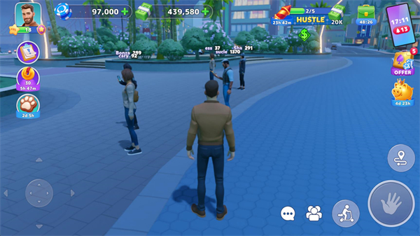 2.开放度假城市,无缝地图探索,接取任务、经营店铺、参与派对