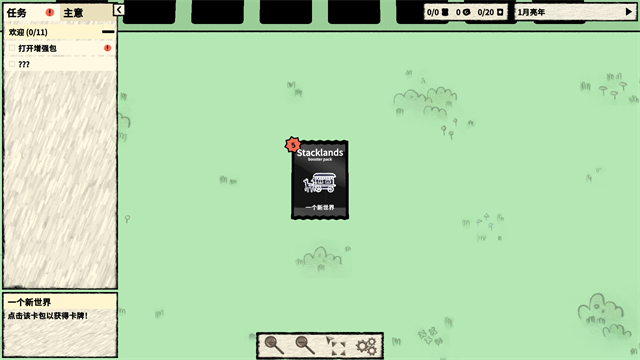 2、开始后左侧是任务栏和你目前已知的“主意”(需要不但解锁),右侧是卡牌,底部是一些基础的放大、缩小按钮,点击卡牌就可以在左下角获得提示。