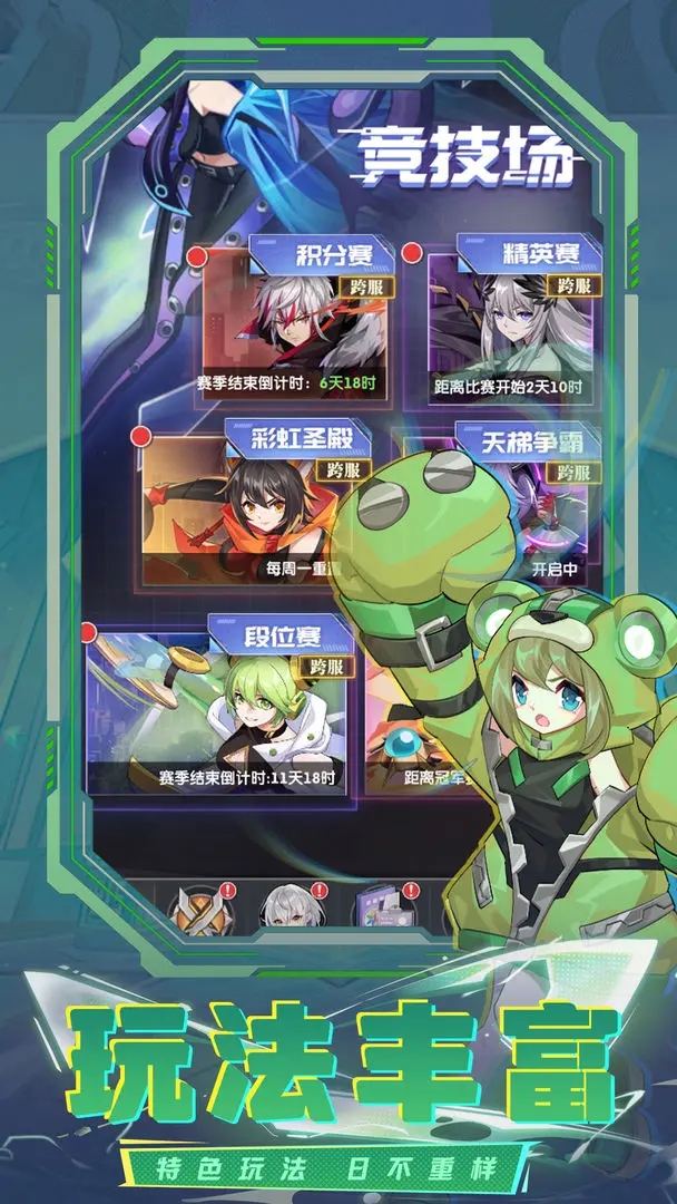精灵猎人是一款二次元风格的放置类卡牌对战手游,在这款游戏中拥有非常多不同职业的角色可以使用,每个角色都有其独特的技能,你可以通过招募的方式来解锁获取强力的新角色,游戏中拥有PVP和PVE两种玩法模式,在PVP中你可以挑战副本BOSS获取道具,在PVE中可以与其他玩家进行对战,获取更高的排位积分。