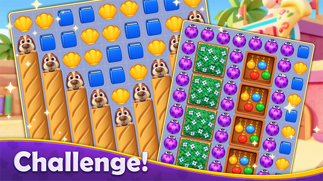 1.通过经典三消关卡收集资源,合成更高等级物品解锁新区域与装饰;