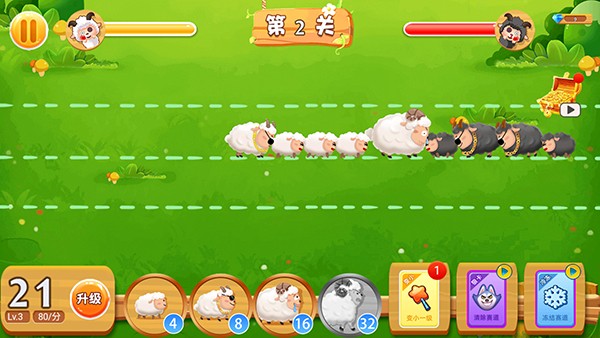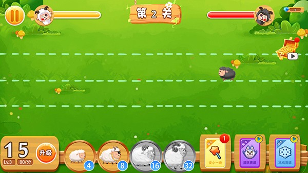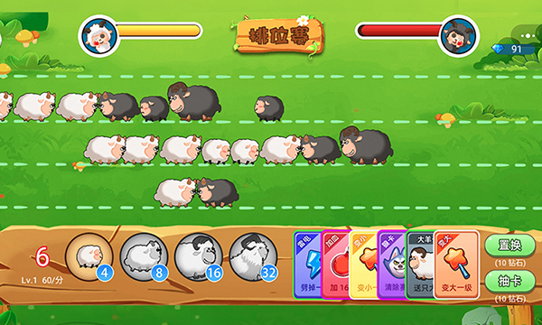 3、只有在相对的跑道上比对面的羊的力量更强才能将敌方的羊一直压制后退。