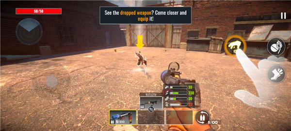 7、击败僵尸后还有几率掉落武器,靠近后就会出现拾取按钮。