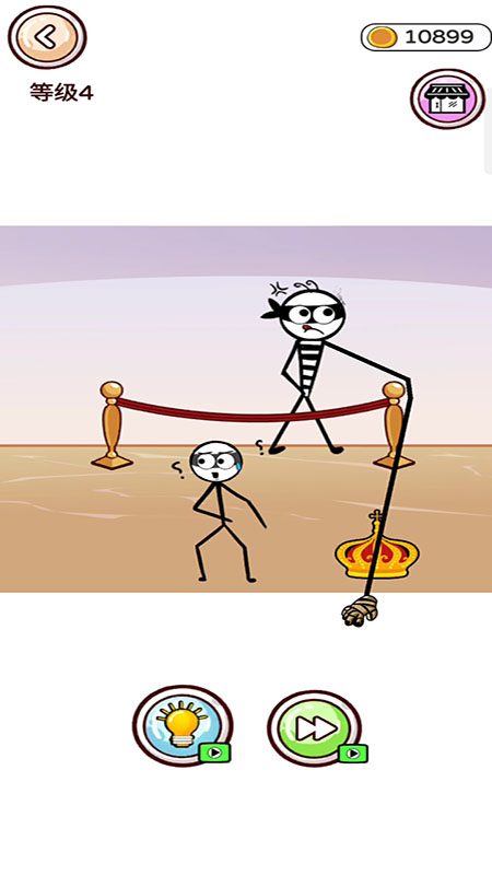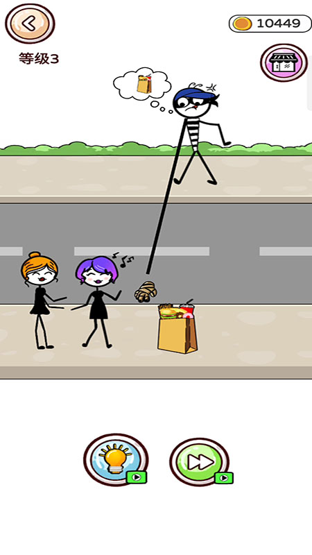 1、通过手指在屏幕上自由画线,帮助眼前的火柴人神偷快速偷盗东西吧。