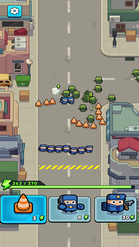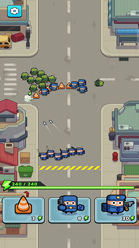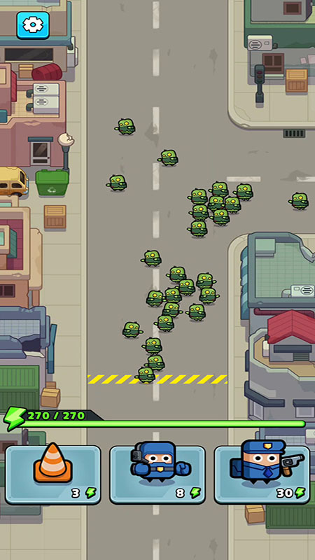 1.采用垂直地图设计,丧尸沿螺旋路径进攻,完美适配移动端单手操作