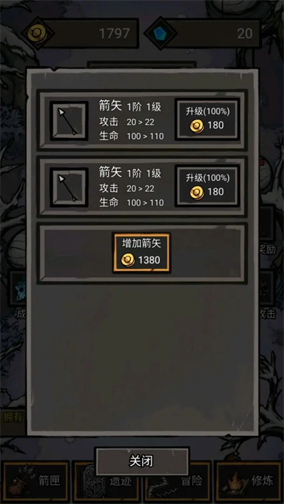 在无尽箭域游戏中,拥有丰富的关卡挑战等待玩家体验,每一层关卡都会给予不同的奖励,你可以通过消耗金币来购买箭矢增加你的输出,游戏中还有非常多成就等待你去完成,完成这些成就获得丰厚奖励,蓝宝石还可以用于强化你的各项基础属性!