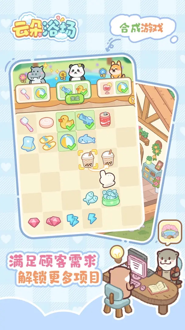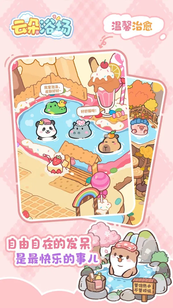 自由布局:玩家可以自由设计浴场布局,打造个性化的云朵浴场。