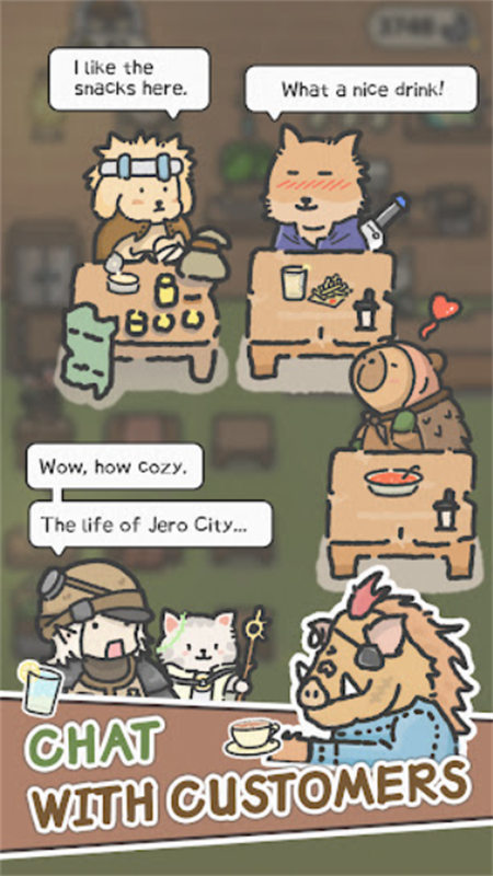 2.自由装饰个性化咖啡厅,通过特殊家具提升客流量,与动物居民互动解锁隐藏故事
