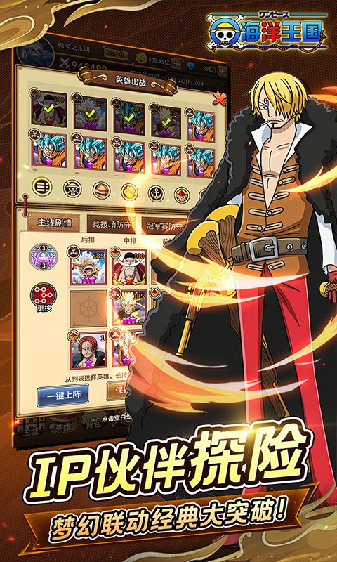 海洋王国是一款以经典动漫海贼王改编而来的放置卡牌策略对战手游,你将化身一名船长在这片广阔的开放海域中展开冒险,还可以和路飞、索隆这些经典角色并肩作战。