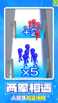 2、 控制角色在充满障碍的赛道上持续自动奔跑,通过精准的左右移动来增加人数。