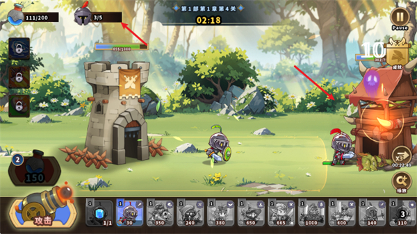 左下角的打炮可以通过点击的方式来主动攻击对手,发射过一次后进会CD,左上角这个图标显示的是可召唤的士兵数量