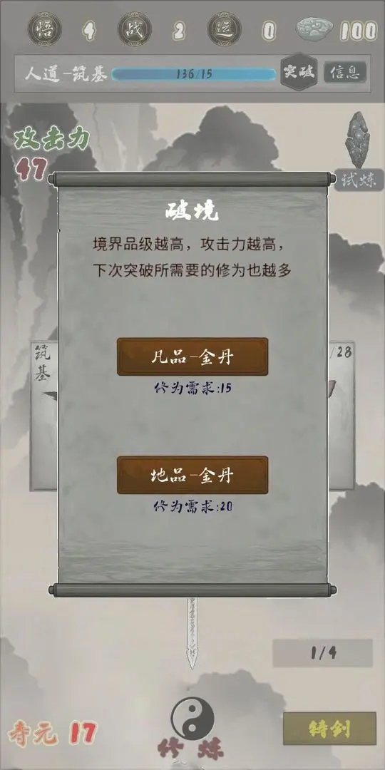 多种修炼选择:选择不同的修炼路线,如打工赚钱购买修炼资源,或利用道法扬名立万,每种选择都影响道途进展。