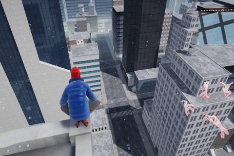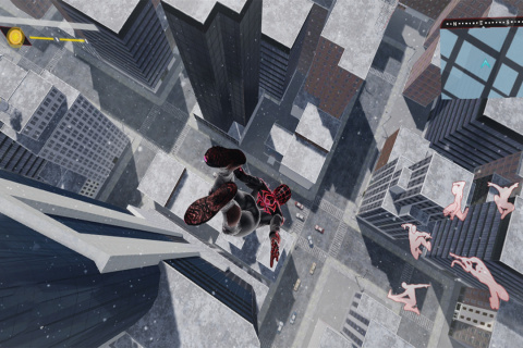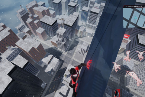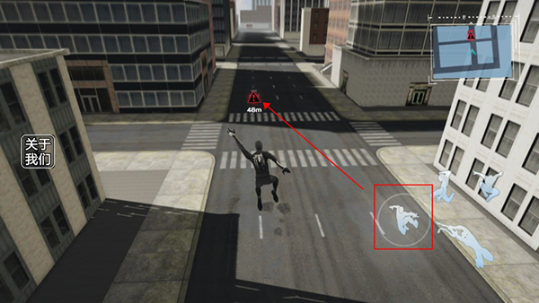 1、进入游戏后,玩家可以点击最右侧的跳跃键控制蜘蛛侠下楼。