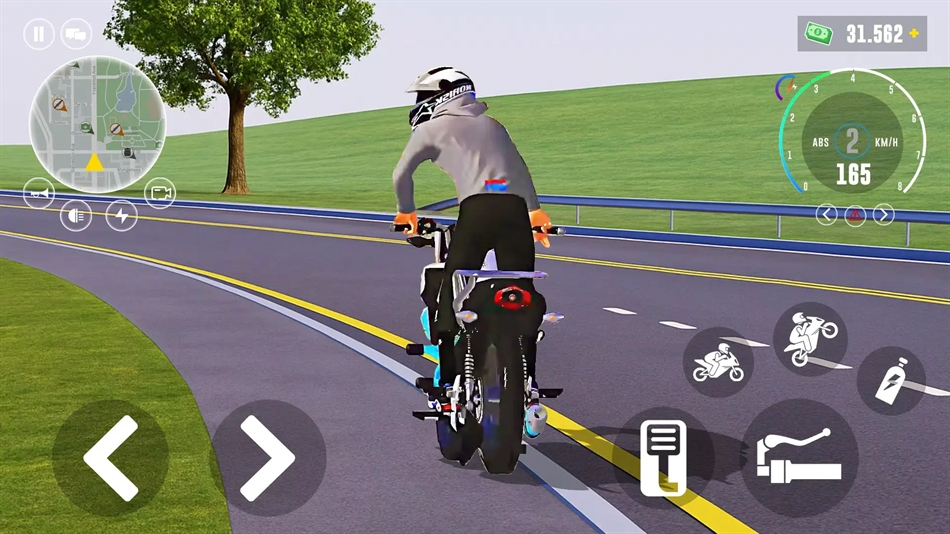 终极摩托车冒险的控制也与很多赛车游戏不同,它的操控模拟了真实的摩托手把,油门和刹车不管是外观还是功能都尽力还原了现实中的摩托车,玩起来很有代入感。