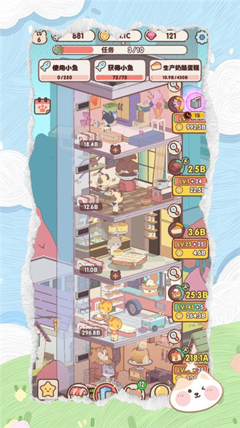 3.采用萌系卡通画风,猫咪员工拥有丰富的表情与工作动画