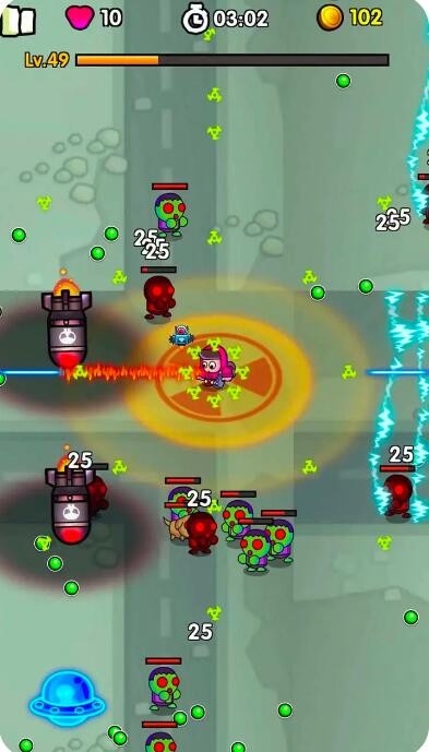 4、进入游戏,在屏幕中滑动来操控角色移动,角色会自动射击范围内的僵尸