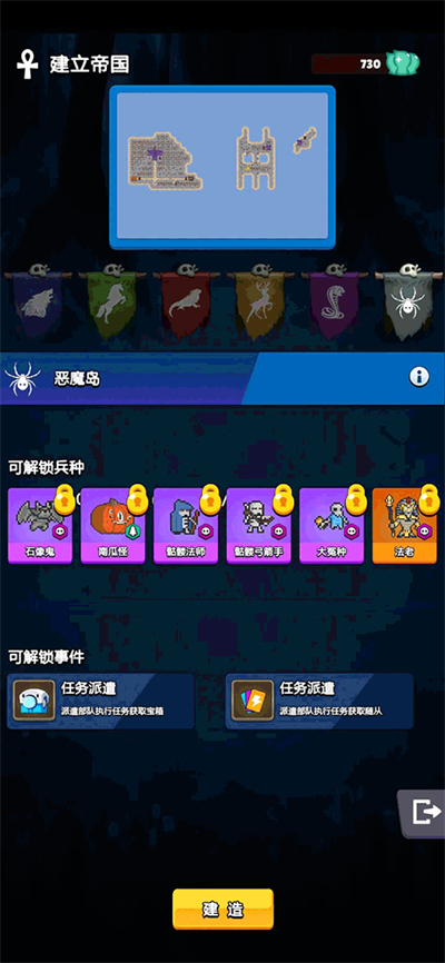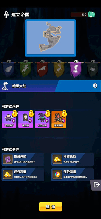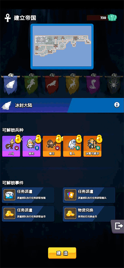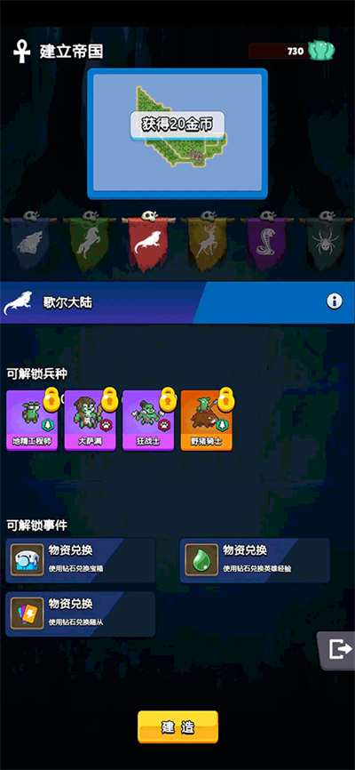 建立你的帝国,不同的帝国可解锁的兵种不同