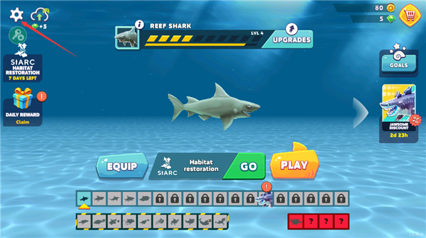 饥饿鲨进化是一款不错的老游戏,他的里面有许多鲨鱼,比如现实中存在、不存在的、灭绝的这些,我们需要赚取金币解锁更多的鲨鱼,对鲨鱼强化和购买宠物,装备。