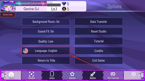 1、打开加查薰衣草游戏,点击右下角的“Options”设置。