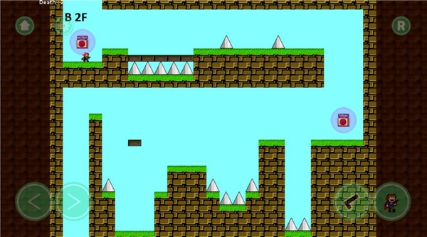 3、通过屏幕左下角的左右箭头按钮操控角色移动,利用右下角的攻击键等操作,躲避场景中的尖刺陷阱前进。
