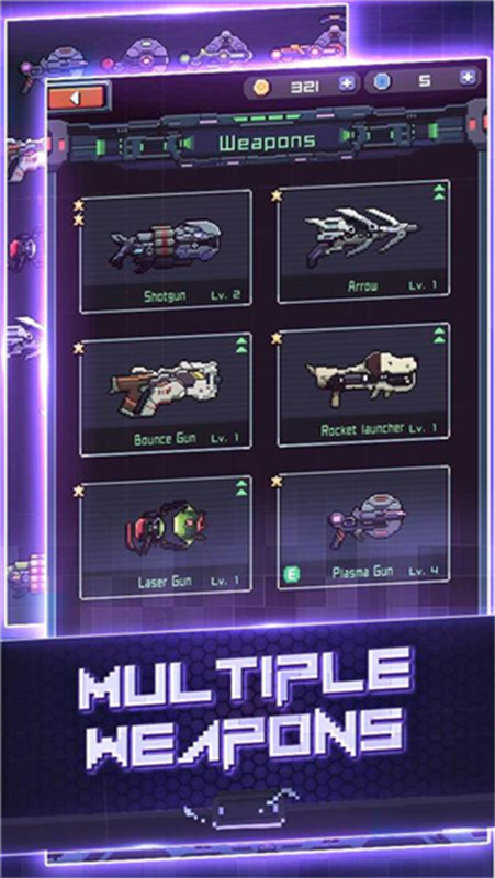 10.以屏幕中线为基准,按左边向左跳跃,按右边向右跳跃,每次跳跃都会向另一个方向开枪,可连续多次跳跃