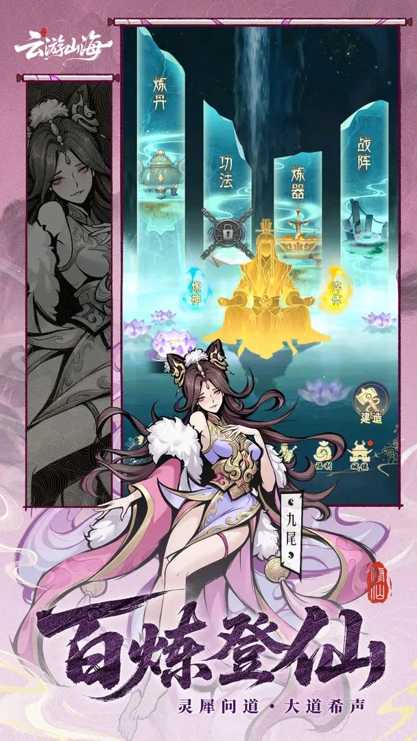 云游山海手游是一款国风RPG修仙手游,有意思的是这款游戏的战斗风格采用漫画式的画面展现,全程不需要手动操作,角色会自动进行战斗,你可以通过不断提升修为来解锁更多有趣的修仙玩法,比如炼丹、炼器以及学习各种功法等等。