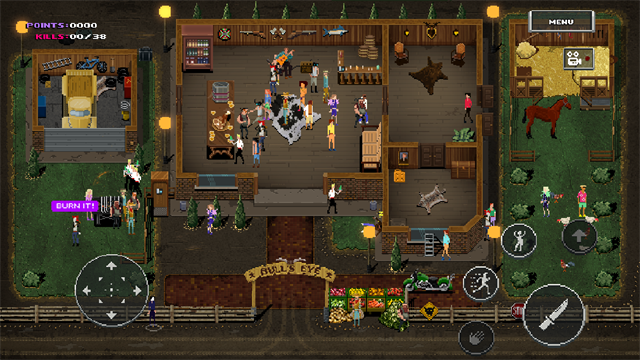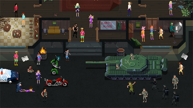 partyhardgo采用像素画风,所以你也不必担心场面过于血腥,画面接受度较高,成功暗杀非常解压,没成功则血压直线升高哈哈,很有意思的一款游戏。