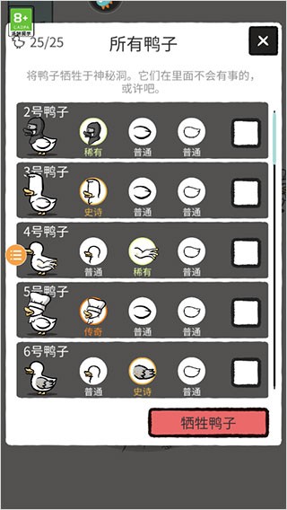 4、如果不喜欢某只鸭子,可以点击左边鸭子的图标,牺牲掉不喜欢的鸭子。
