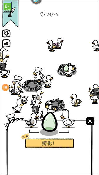 1、通过不断探索和培养,你将发掘更多有趣的鸭子角色,体验充满创意的鸭子世界。