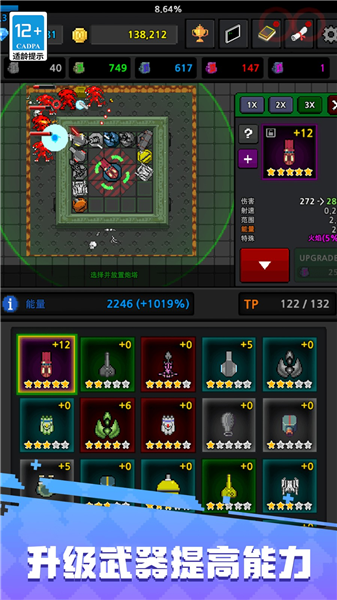 1.扮演城堡守护者布置防御塔,武器种类丰富