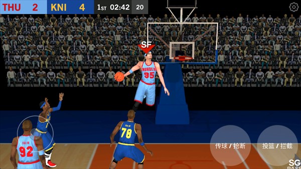 3、通过左侧虚拟摇杆操控球员移动,参与篮球对战。
