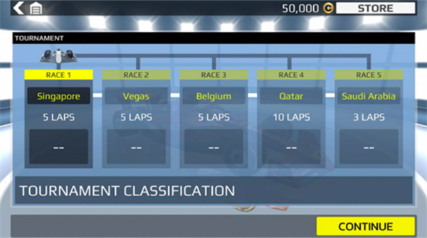 对于初次体验的玩家来说,建议从世界锦标赛模式开始,点击“START CHAMPIOINSHIP”开启你的竞速之旅。