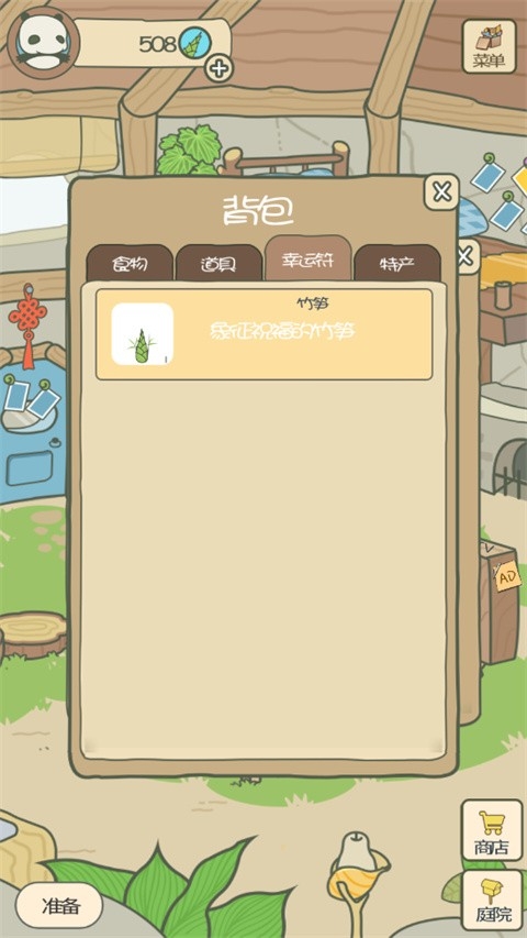 1、首先进入旅行熊猫游戏,在屋子外边我们可以收集竹子。