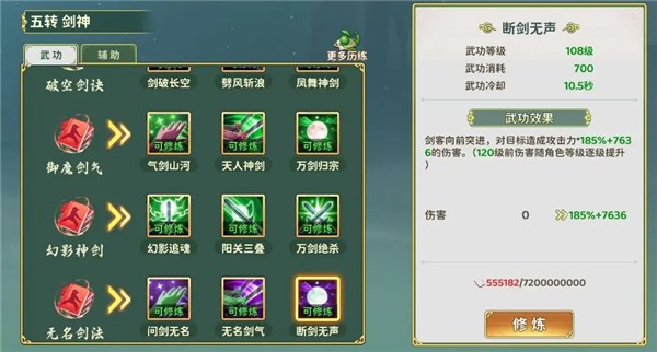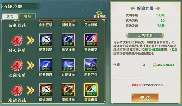 五转:流光乱舞(提升武功伤害),可以后期再考虑点修。
