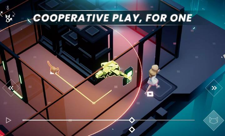 双角色协同的立体化策略:少女和猫咪的能力不同(通常少女负责互动机关,猫咪可以钻入狭小空间或干扰守卫),谜题设计强制要求你分开操控两者,并在时间线上精确协调它们的行动。例如,让猫咪在过去触发一个开关,为少女在未来的前进铺平道路,策略维度非常立体。