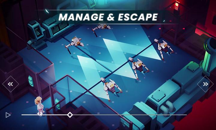 颠覆性的“时间轴”解谜玩法:游戏最大的创新在于将整个关卡变成了一个可视化的时间轴。你可以在时间轴上任意点暂停、前进、倒退,实时观察自己和守卫的行动轨迹。这让解谜从“试错”变成了 “沙盘推演” ,你需要像导演一样,为少女和猫咪编排一套完美同步、避开所有守卫的行动剧本。