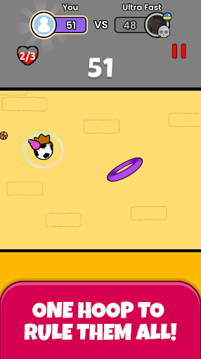 飞天扣篮是一款非常典型的VOODOO式超休闲手游。通过连续点击屏幕,控制篮球的飞行高度,使其穿过一个个移动的篮筐。没有复杂的规则或剧情,目标纯粹是飞得越远,得分越高。篮筐的位置和移动轨迹会不断变化,精准地完美通过能获得多倍分数加成。
