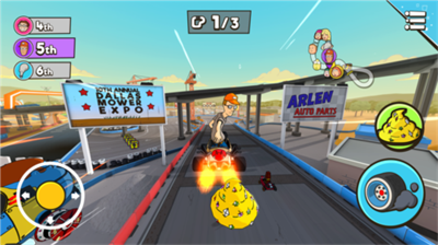 “梗百科”道具系统:道具均来源于动画梗。如拾取“时光机”可短暂令全场赛车倒着开,而“神秘盒”可能开出任何东西,从火箭筒到一只无用的渡渡鸟,高度还原动画的不确定性幽默。