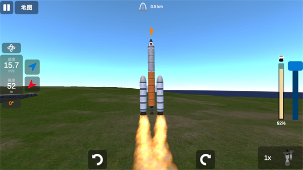 6、正式开始后点击右下角的按钮可以点燃不同的推进器,右边的蓝色按钮是调整推进器的功率大小。