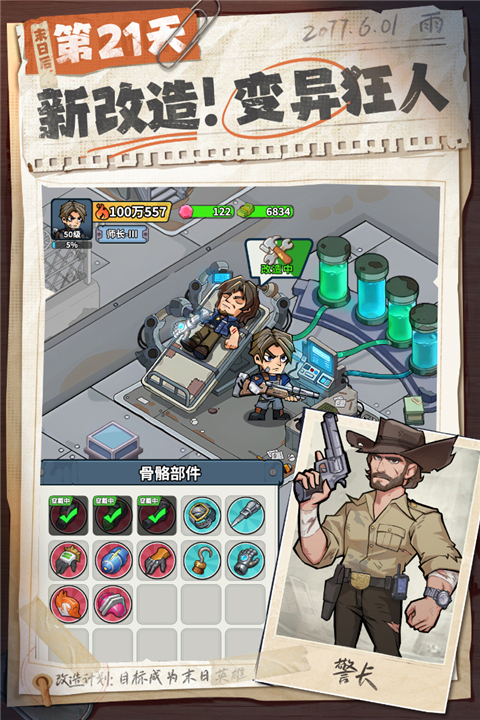 可对角色进行升级、升星,提升战力、攻击、防御、生命等属性,强化小队战斗能力,应对更强的丧尸与挑战。