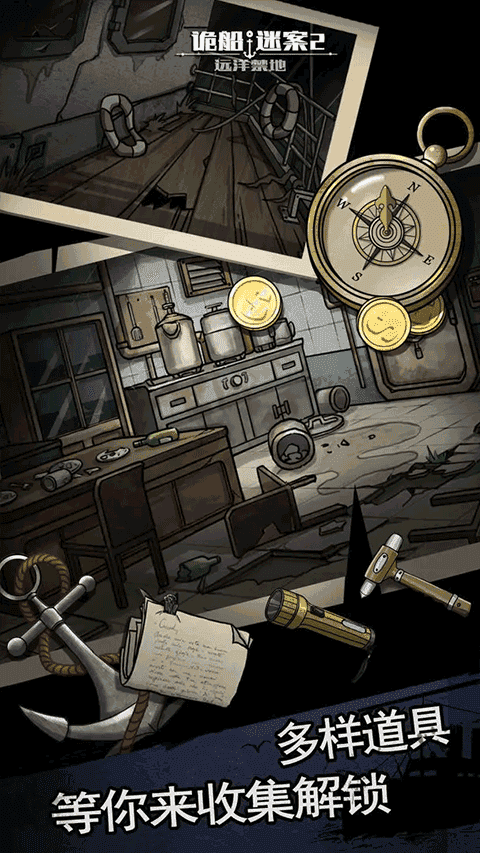密室逃脱之诡船谜案2是一款很有挑战性的第一人称解谜冒险游戏,你将化身成为一名意外登上诡异渔船的调查者,在布满灰尘和锈迹的船舱、甲板及底舱中探索,通过收集物品、破解机关和串联线索,一步步揭开密室逃脱之诡船谜案2中船上发生的离奇命案和尘封往事。密室逃脱之诡船谜案2采用了写实阴暗的美术风格,配合上沉浸式的环境音效给人营造出紧张悬疑的氛围,玩起来代入感十足很是上头。