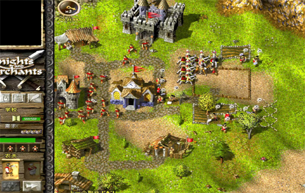接下来就是大力发展,在基地左右两个路口各修建三、四个塔楼,敌人会在1个多小时后开始派骑士来骚扰,虽然人数众多,但每次只拆掉一个塔楼后就会全部返回,可以不断重建。