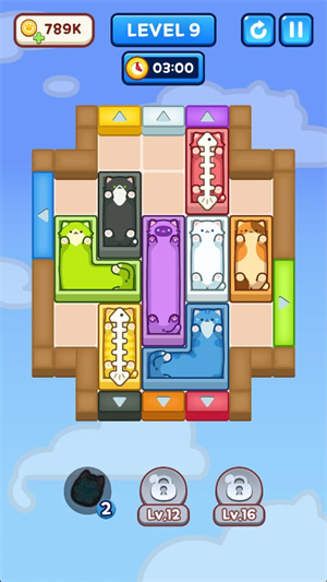 猫咪逃脱是一款以可爱猫咪为核心的休闲益智解谜游戏。通过点击、滑动或拖动场景中不同形状和颜色的方块,利用它们的移动、旋转或消除来改变地形,最终为猫咪搭建一条通往出口的畅通路径。随着关卡推进,你会遇到更多颜色的猫咪、更复杂的方块组合,谜题设计也逐渐从一目了然过渡到需要需要多看几步的策略规划。